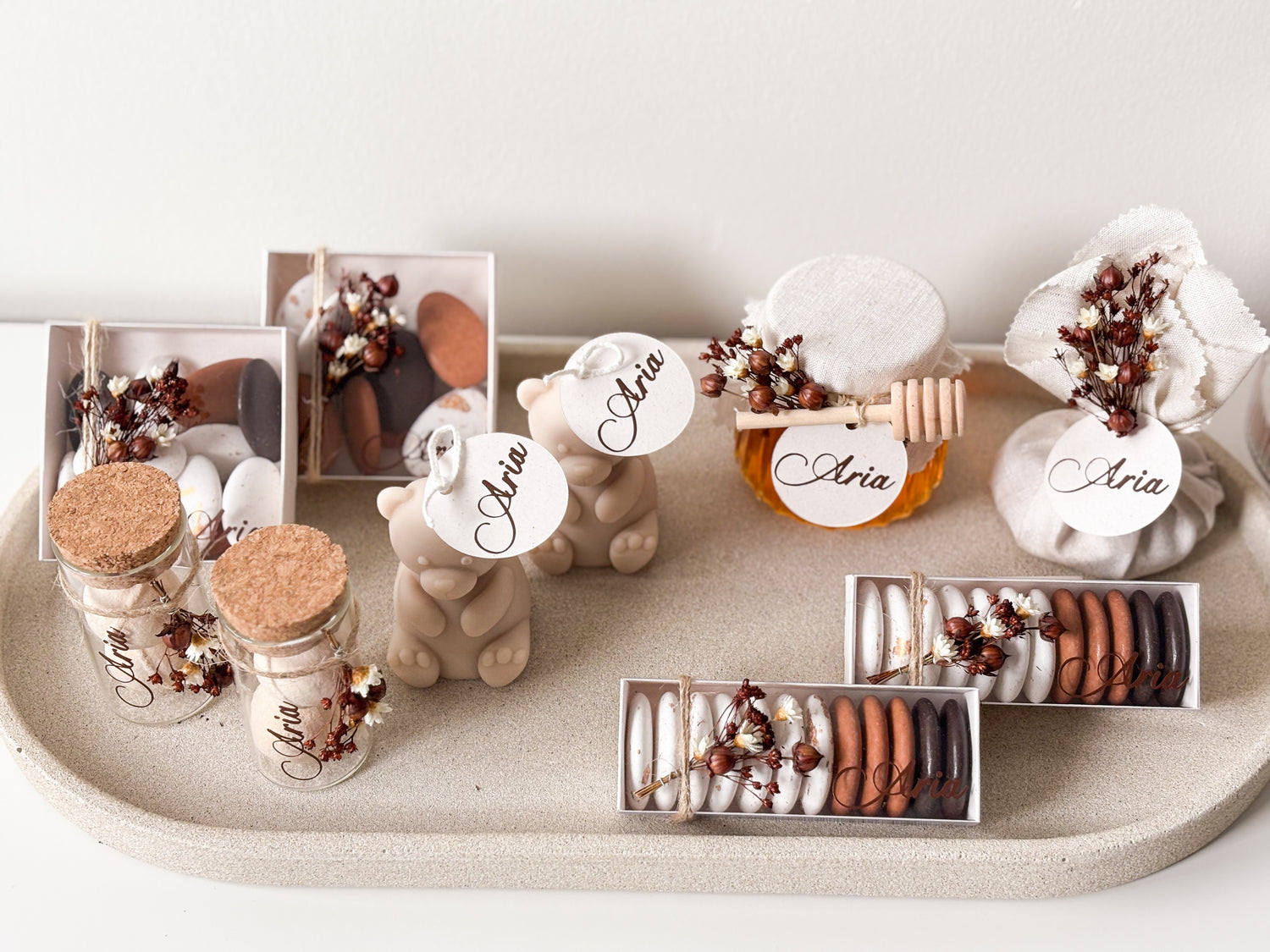 We zijn ontzettend blij dat we voor Atelier D hebben gekozen voor het doopsuiker van ons eerste zoontje Louie. Ze werkte een prachtig concept uit, volledig afgestemd op ons geboortekaartje. Alles werd tot in de puntjes voorbereid: van de bestellingen tot de afwerking. Wij hoefden enkel nog de stickertjes te plakken, iets wat voor ons een gezellige “date” werd en toch een persoonlijke touch gaf.