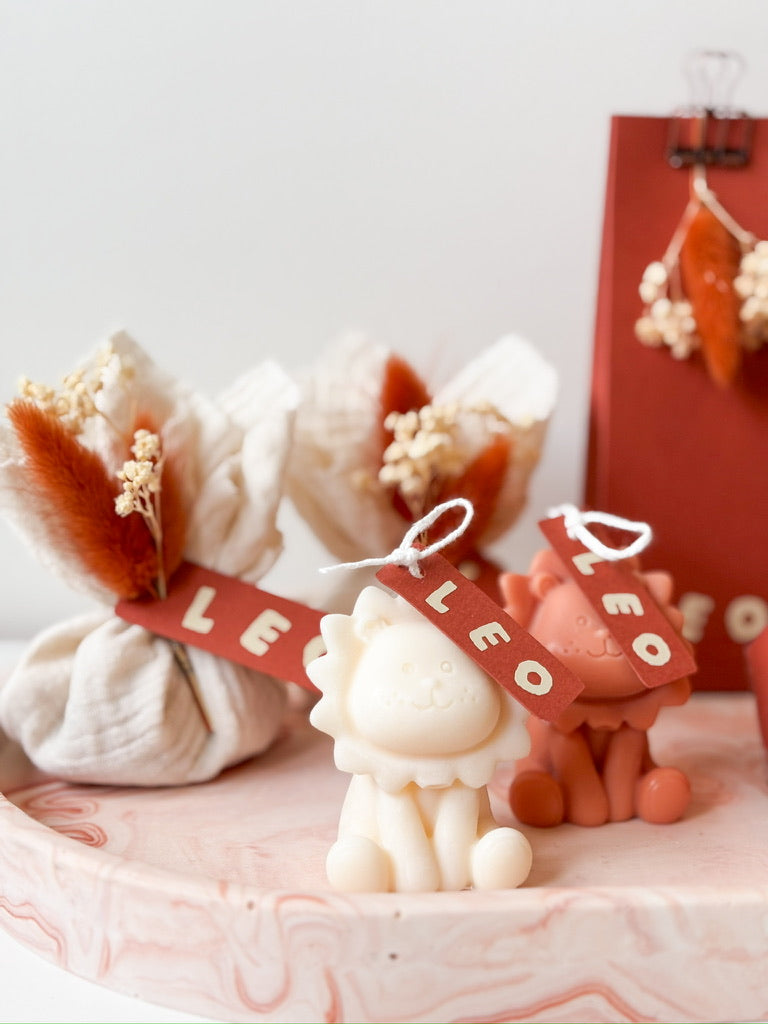 LeeuwtjeDeze schattige leeuwtjes voegen een speels accent toe aan het concept van Leo. De terracotta kleur past er perfect bij!