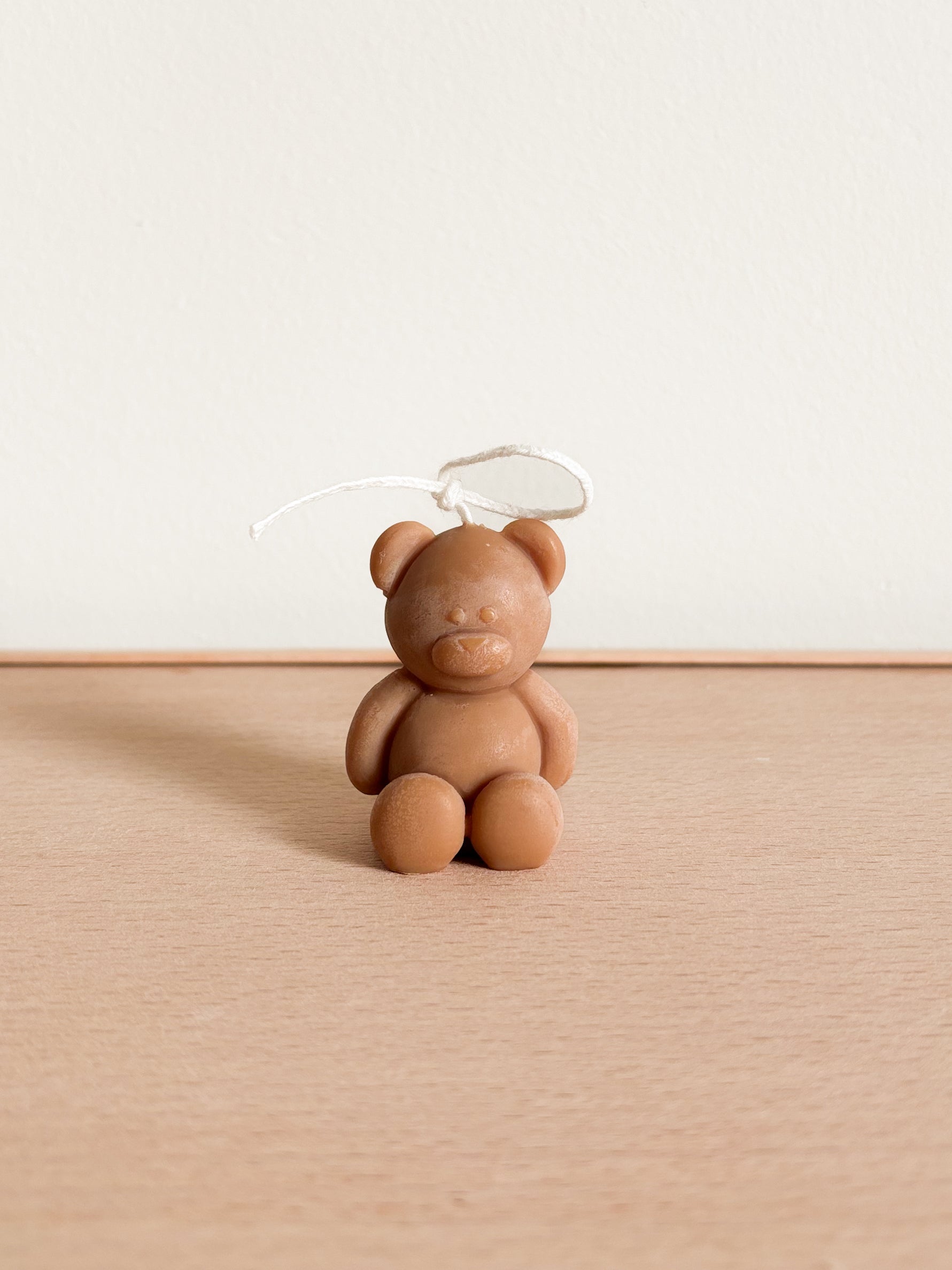 Schattig mini-kaarsje in de vorm van een beertje, ideaal als detail bij doopsuiker of bedankje.