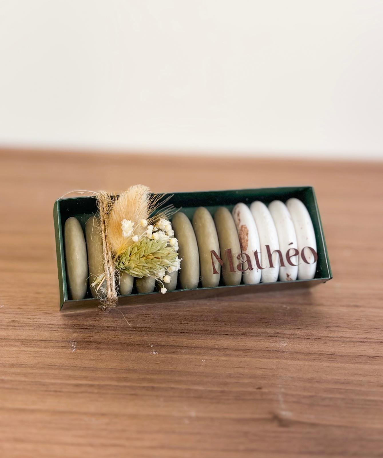 Dit smalle kartonnen doosje met (doorzichtige of ondoorzichtige) wikkel van 9,5 x 3,5 x 2 cm is ideaal voor het verpakken van suikerbonen. Er passen 10-12 suikerbonen in één doosje.