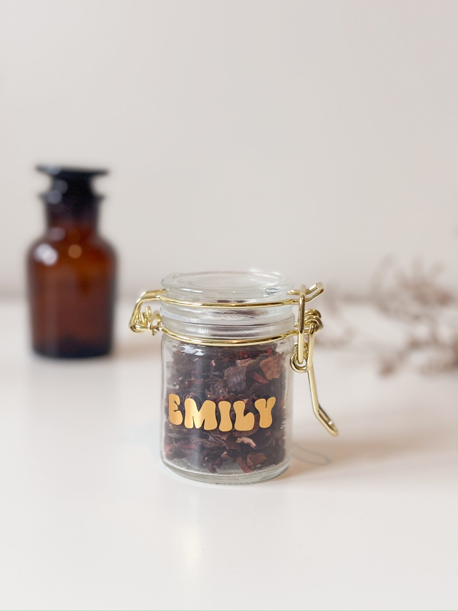 Dit kleine weckpotje met gouden afsluiting is een stijlvolle en veelzijdige verpakking voor jouw doopsuiker. De luxueuze gouden sluiting geeft een verfijnde uitstraling, terwijl het glazen potje perfect is voor snoepjes, badzout of thee. Combineer met naamstickers, een bijpassend lintje, of droogbloemen om je creatie helemaal af te maken.