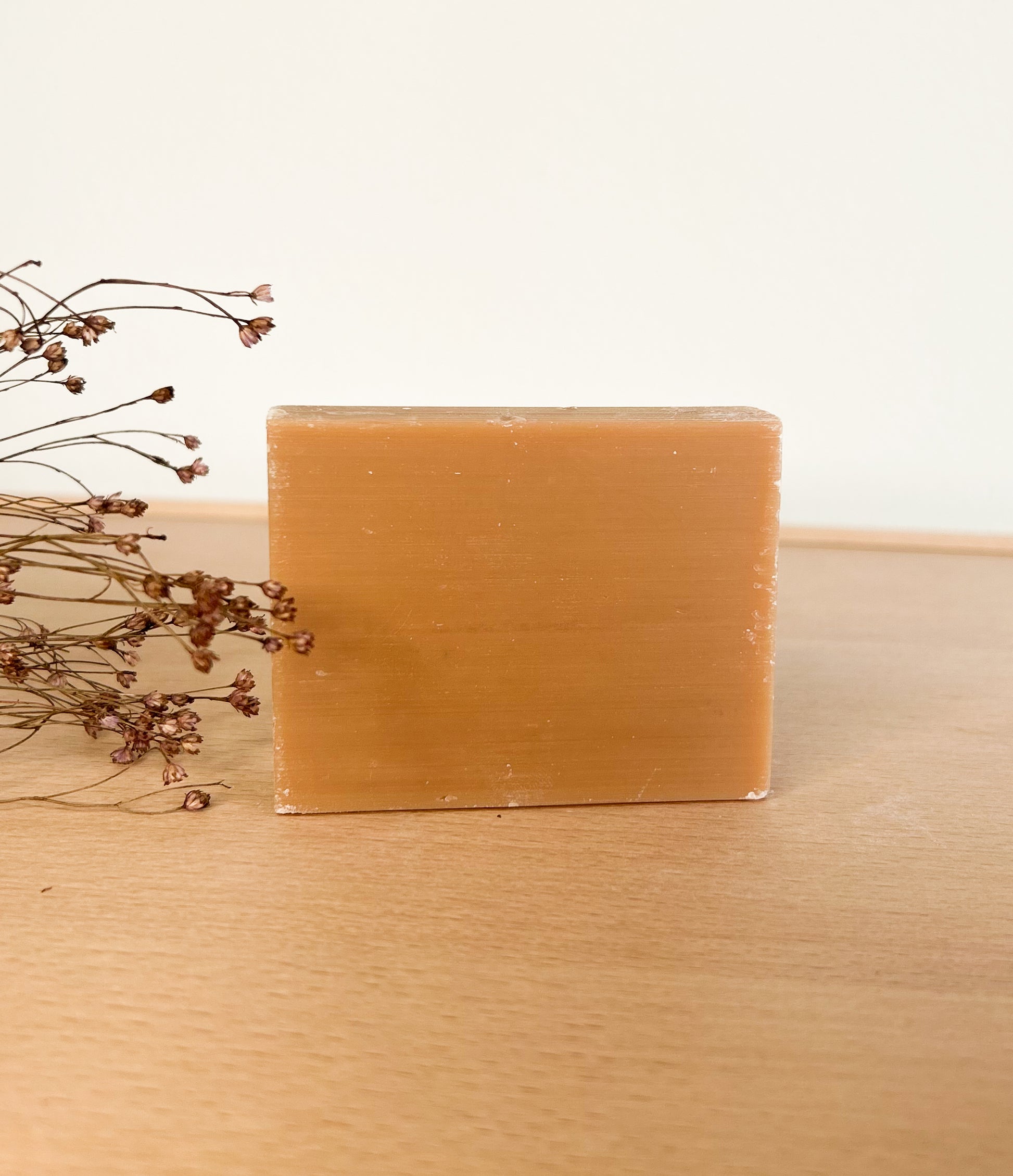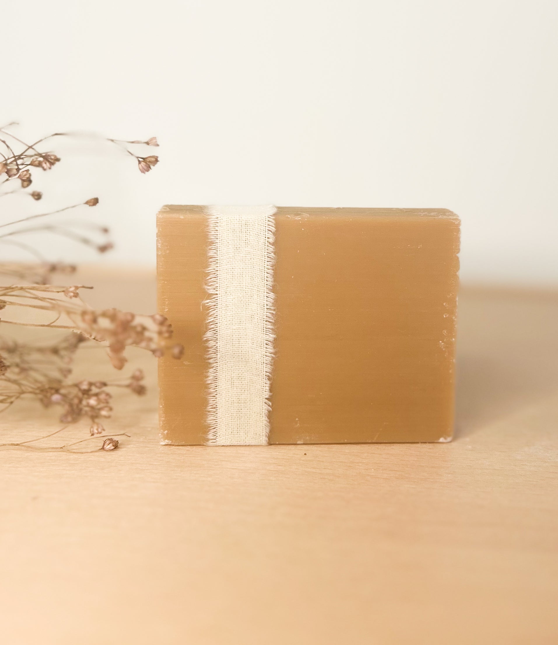 Zachtbruin zeepje met een warme geur van amber en sinaasappel. Perfect voor een herfstig, aards of boho geïnspireerd doopsuikerthema.