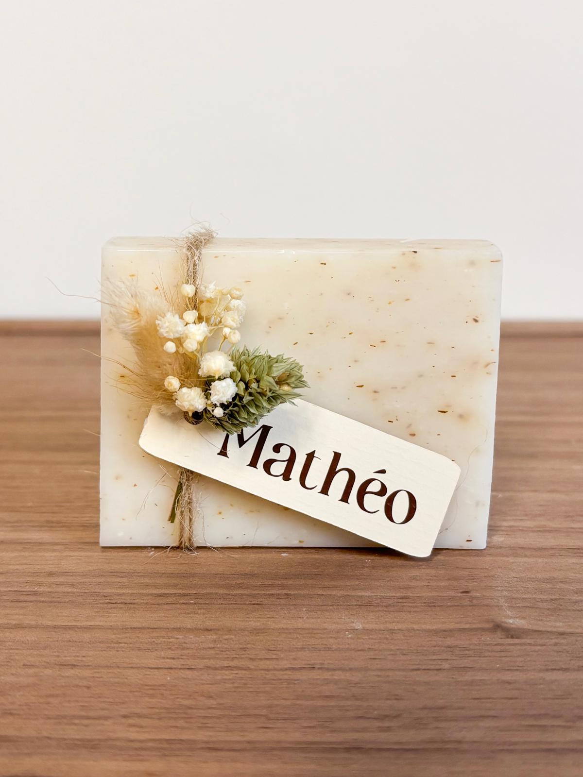 Zacht wit-beige zeepje met fijne spikkeltjes en een heerlijk natuurlijke geur van rozemarijn, tijm en lavendel. Een stijlvolle klassieker die in élk doopsuikerconcept tot zijn recht komt.